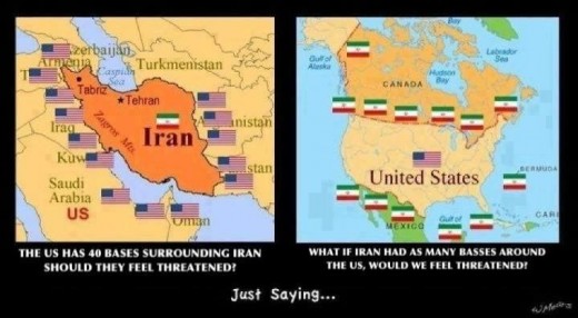 بنابراین با اطلاع از این دانسته ها هر انسان با فهمی درک می کند که آمریکا با در اختیار داشتن تعداد بی شماری پایگاه نظامی در سرتاسر جهان و خصوصاً خاورمیانه و بیش از همه اینها در اطراف کشور ایران و پناهگاه های متعددی در حاشیه ی خلیج فارس (کشورهای عربی از جمله:عربستان،امارات،قطر،کویت و …) به راحتی می تواند بزرگترین ضربات و حمله نظامی را به ایران وراد نماید و ایران حتی نمی تواند یک توپ را در خاک آمریکا شلیک کند و برای ایران این نهایت بی انصافی است!